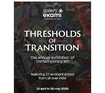 കണ്ണൂർ:കണ്ണൂരിലെ പ്രമുഖ ആർട്ട് ഗാലറിയായ ഗാലറി ഏകാമി നാലാം വർഷത്തേക്ക് കടക്കുന്നതിനോടനുബന്ധിച്ച് നടത്തുന്ന ഗ്രൂപ്പ് ഷോ Thresholds of Transition (പരിവർത്തനത്തിന്റെ പടിവാതിൽ) ഏപ്രിൽ 18 ശനിയാഴ്ച വൈകീട്ട് 5 മണിക്ക് ആരംഭിക്കും. പ്രമുഖ സിനിമാ സംവിധായകൻ ദിൻജിത്ത് അയ്യത്താൻ മുഖ്യാതിഥിയാകും. പ്രമുഖ കലാകാരും നിരൂപകരും കലാസ്വാദകരും ഉദ്ഘാടനച്ചടങ്ങിൽ പങ്കെടുക്കും. ഉദ്ഘാടനത്തെ തുടർന്ന് മൃണാളിനി മനോജിന്റെ സിത്താർ കച്ചേരിയും ഉണ്ടായിരിക്കും.