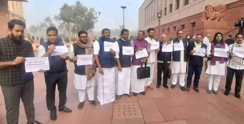‘പോറ്റിയെ കേറ്റിയെ സ്വര്‍ണം ചെമ്പായി മാറ്റിയെ’; പാര്‍ലമെന്റിന് മുന്നില്‍ പാട്ട് പാടി കേരളത്തില്‍ നിന്നുള്ള യുഡിഎഫ് എംപിമാരുടെ പ്രതിഷേധം