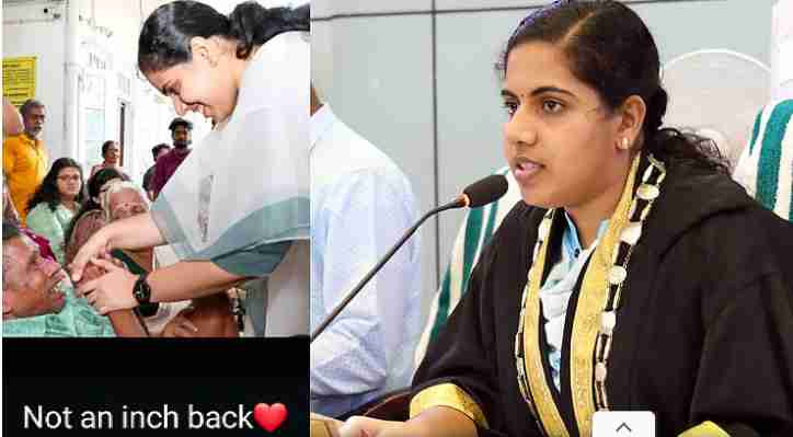 'ഒരിഞ്ച് പിന്നോട്ടില്ല'; വിമർശനങ്ങൾക്ക് മറുപടിയുമായി ആര്യാ രാജേന്ദ്രന്റെ വാട്സ്ആപ്പ് സ്റ്റാറ്റസ്